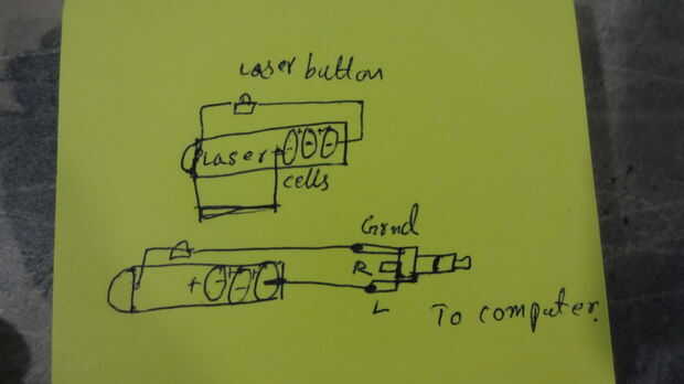 Hacking es fácil, seguir el circuito que se dibuja en el papel y se puede conectar al enchufe de audio con la luz láser