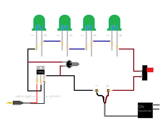 Bueno, hay muchos instructables haciendo música reactivas LEDs algunos usando Adruino, mientras que otros con transistor TIP31. Vi uno con OP-AMP así. Inspirado por los quería personalizar mi portatil con LEDs que le parpadean con la música a través