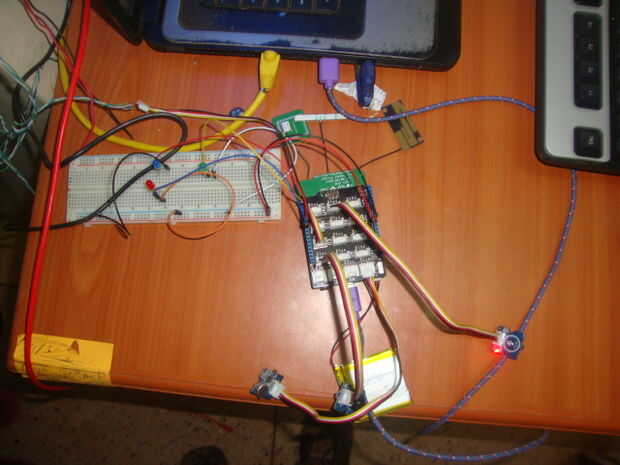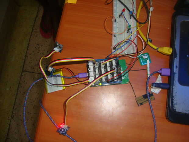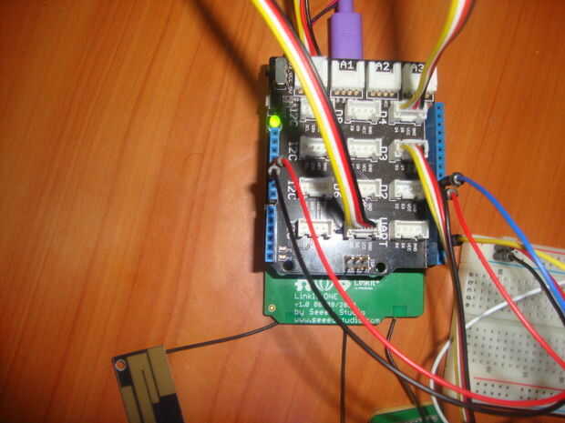 el zumbador en el puerto de D5D4 en la base escudo IO, pulsador en Puerto D4D3 y touch sensor en D6D5. Tenga en cuenta que el sensor de contacto y el botón se pueden utilizar indistintamente porque representan el mismo escenarios siendo sensores digitales.