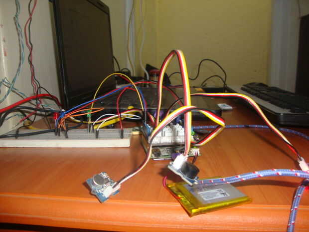 Conecte el sensor de sonido (mic) en el puerto A0 en el escudo base IO. Micrófono es un sensor analógico; podría utilizar otros slots como bien, es decir, A1, A2 o A3. Puedes leer más sobre la diferencia entre sensores analógicos y digitales.