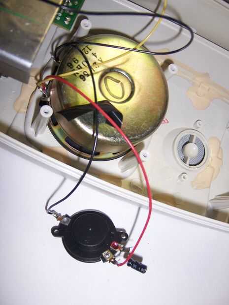 ver esa cosa de metal grande? Es un altavoz. Si los cables que vienen de él (como otro orador) que es más fácil llegar, sólo utilice. ¿Creo que la mina fue gancho hasta un tweeter? Yo no soy un tipo de audio, así que no estoy seguro.