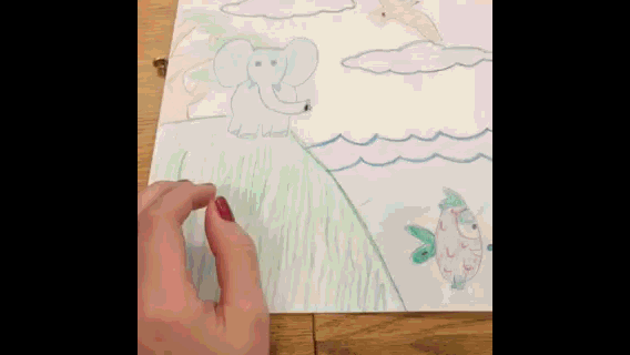 Los sujetadores de cobre brad están lo que conecta la imagen con el MakeyMakey. Cuidado de no rasgar el papel o jab a ti mismo cuando empujando los clavos a través del papel.