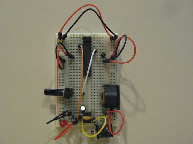 Inserte el conector MIDI en el protoboard. Preparar la toma mediante la identificación de los dos pins situado en la parte delantera de la entrada MIDI de montaje y doblando hacia arriba para indicar la parte delantera de la entrada MIDI. Coloque al conector MIDI en el lado derecho de la placa con el conector hacia el lado derecho. Jack INSERT MIDI en columna I y J, filas, 18, 19, 21, 23 y 24. Las cinco clavijas jack de MIDI ajustarse (perfectamente) en la placa, tener cuidado de no empujar demasiado duro.