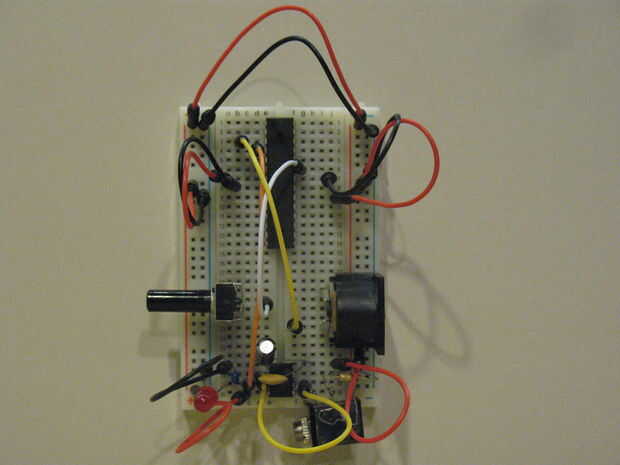 Conecte la clavija de salida de datos MIDI al pin de transmisión (Tx) serial de ATMEGA328, colocando un puente entre columna F fila 23 (pin 5 de datos MIDI) y la columna B fila 3 (328 Tx).
