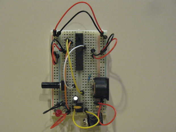 Conectar una resistencia entre el pin de alimentación de MIDI (4) y V + con un resistor de 220 ohmios conectado a la columna H fila 19 (energía de MIDI) y el Bus positivo en el lado derecho del tablero.