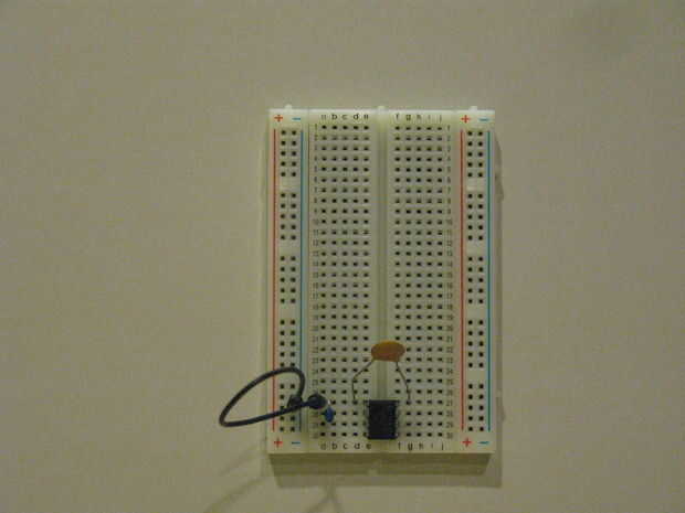 Puede ser útil para cortar las patas del condensador, para un mejor ajuste en el protoboard, pero tenga cuidado de dejar suficiente espacio para las piernas cubrir el microchip y conectar completamente con las tomas de placa.