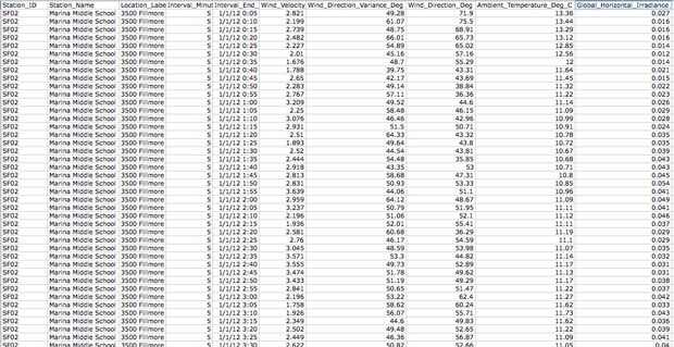 -Datos de viento en 4 lugares diferentes durante algunos meses de 2012