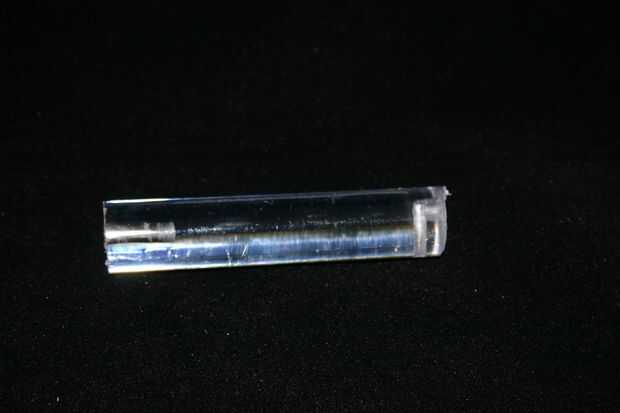 Corte una pulgada de 3 7/8 largo pedazo de la barra de acrílico (diámetro de 1 pulgada, usé el mango claro de un destapacaños de lujo).