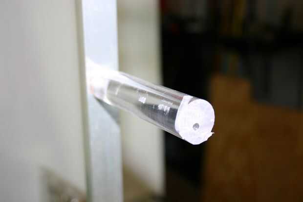 Con un tornillo, coloque la varilla en el canal de soporte de aluminio--11 pulgadas desde la parte superior.