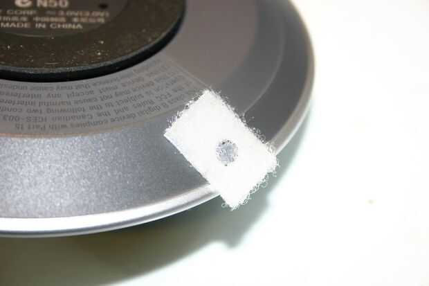 Corte un cuadrado pequeño de Velcro y hacer un agujero en el centro.  Coloque el lado adhesivo a la parte que tiro base (orificio debe permitir el LED blanco brillar a través de).