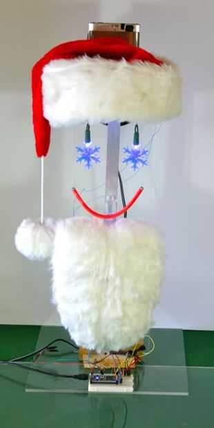 Casi listo. Línea de la lente de la cámara para arriba muy bonita de cara de Santa. Conecte la fuente de alimentación de CA de Sony en la base del partido. Fije la fotocélula de Velcro para el cierre de Velcro en la parte de base. Conecte la cámara a la toma de cámara. Gire la parte base en. Encender la cámara. Apague el flash de la cámara. Con cinta aislante, tapa de la cámara de ámbar LED que quiere "ayudar con el foco". Asegúrese de que la cámara está en la sonrisa/detección del partido base nunca apagar modo.