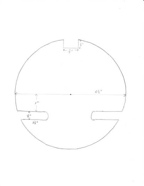 Vamos a empezar la construcción mediante la reducción de un disco de madera contrachapada gruesa de 1/4 de pulgada como se muestra en la plantilla anterior.
