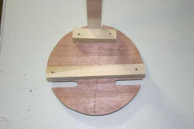 Conectar un 6 1/2 pulgada largo por 3/4 de pulgada por 3/4 de pulgada de bloque de disco adyacente a las rendijas de la madera.