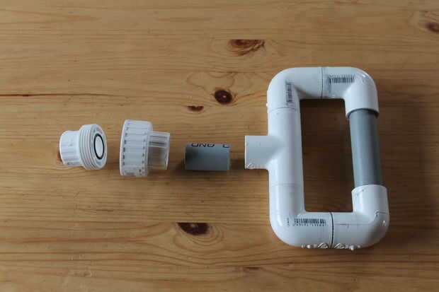 Usando otro 1-3/4" talón, coloque una media de la Unión a la cabeza y la otra mitad a una sección de la tubería (mi primer largo es alrededor de 12"). Corte a cualquier longitud se siente cómodo.