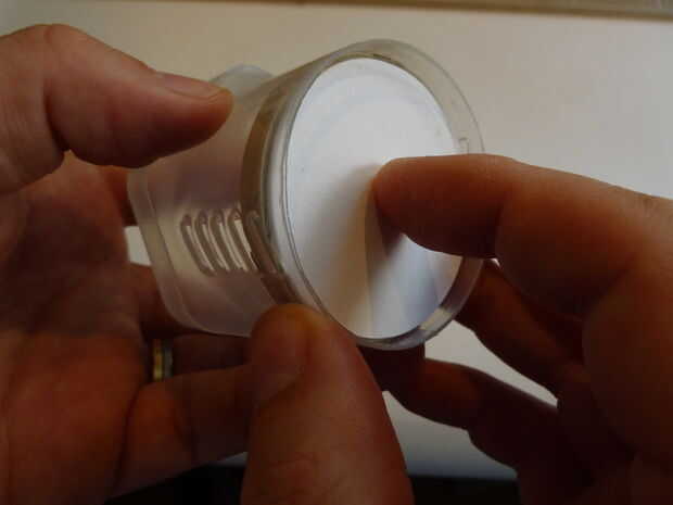 Tome uno de sus discos de cartón y comprobar que se sentará firmemente en el 'borde' de la que acaba de crear. Construir la cornisa con tiras extras si es necesario.