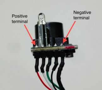 Ahora identificar el pin positivo (esto debe tener un cable rojo conectado a él) y suelde el cable positivo de tu LED al pin. Ahora cuando enchufe la webcam al puerto USB de su ordenador el LED debe encenderse. Si no es así, compruebe los cables para asegurarse de que tiene la polaridad correcta.