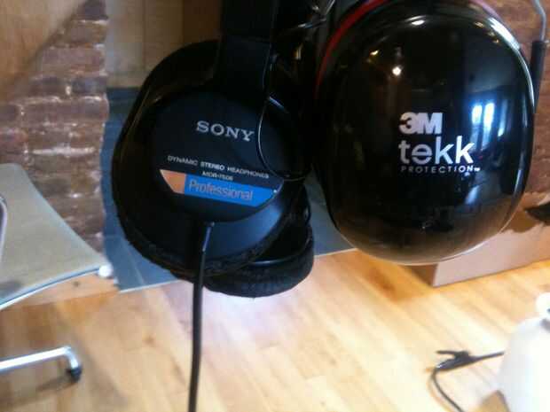 P: ¿qué obtener al cruzar un par roto de Sony $150 DJ latas con un conjunto de $6 de orejeras de Harbor Freight?A: ya sea el mejor día de sonar de césped trabajando siempre o en forma de pistas en el club de referencia sin ir sordo.Soy afortunado de