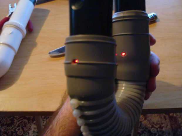 Corte los orificios por lo que pude ver los LEDs si están encendido o apagado. Bastante fácil usar sólo un cuchillo de la manía. Ojo solo mirado, lo suficientemente bueno. Revisa las fotos de referencia en donde se colocan.