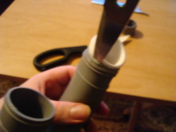 Usé un cuchillo de mantequilla y grunt conseguirlo cuña hacia abajo el tubo de.