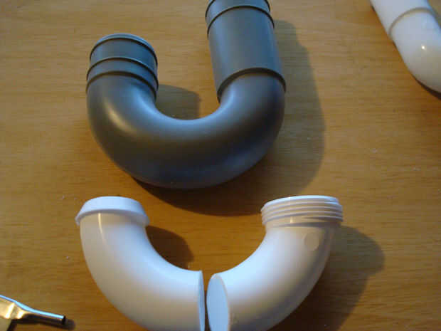 Desea el tubo roscado más grueso para ser el insertar primero. Va en la parte más larga de la curva J (el lado donde va el controlador glowy pelota).