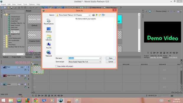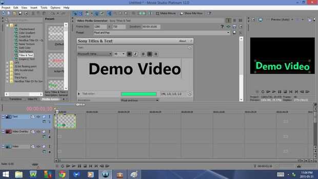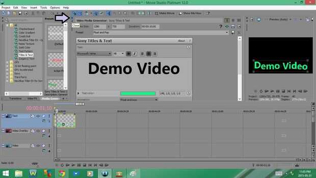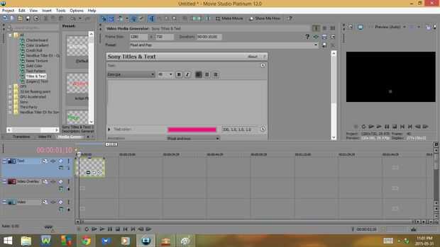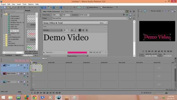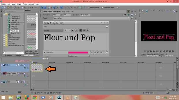4. arrastre el ajuste preestablecido de título a la línea de tiempo
