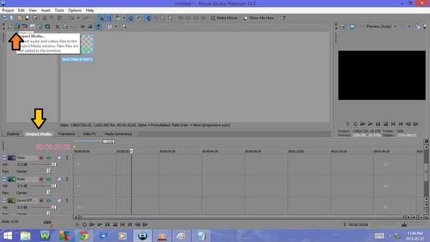 2. Seleccione la pestaña de medios de comunicación de proyecto