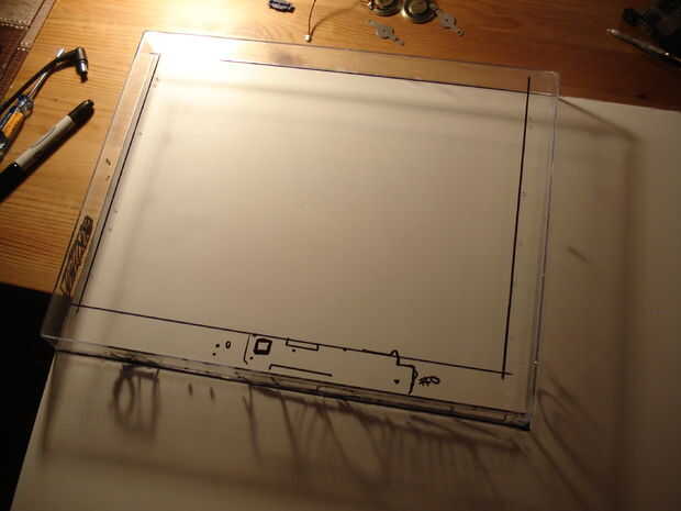 Perfore agujeros en el frente de la caja de sombra para los tornillos que se conecte al monitor. También necesitará taladrar orificios en la parte inferior para sujetar la placa base y ranuras para el ventilador, puertos y unidad de DVD, ranura PCI, etc.. Usted necesitará colocar todo primero y marque lo que usted necesita. Como siempre, marque dos veces, corte / taladro una vez (no al revés)!