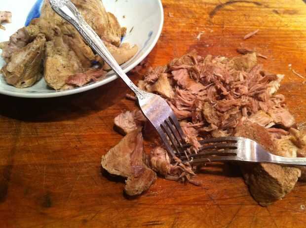 Colocar la carne en un recipiente no reactivo y cubrir con agua (mitad agua y mitad caldo funciona, también). Encienda un fuego medio. Darle y mantener un hervor lento.