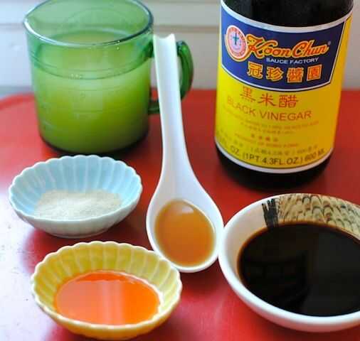 - negro 5 cucharadas de vinagre chino o vinagre de vino rojo 1 cucharada más 1 cucharada de vinagre balsámico (ver nota anterior)