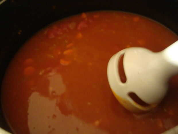 Deje que la sopa enfríe un poco, luego usar una licuadora de inmersión y puré hasta que quede suave.