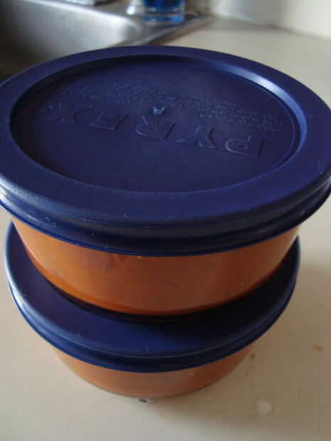 En este punto, puede enfriar la sopa y colocar en envases para congelar. Os recomiendo envases de vidrio porque tomates mancharán su tupperware de plástico. Ya que es una sopa puré, se congele maravillosamente.