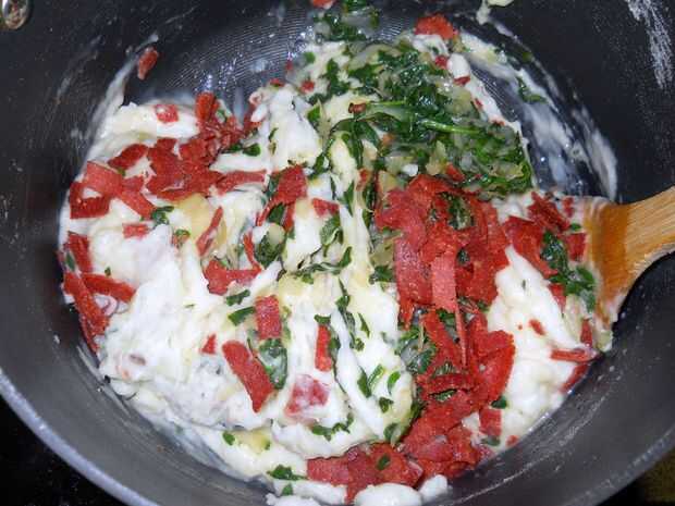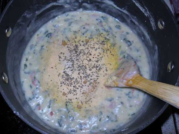 anhelando un poco de salsa cremosa confort Pruebe este uno... muy rápido para hacer. Serví sobre calabaza espagueti, pero puede usar la pasta o el arroz de su preferencia. Sienta libre de añadir cualquier verdura que desee. He añadido espinacas, pued