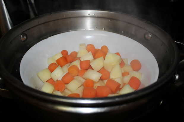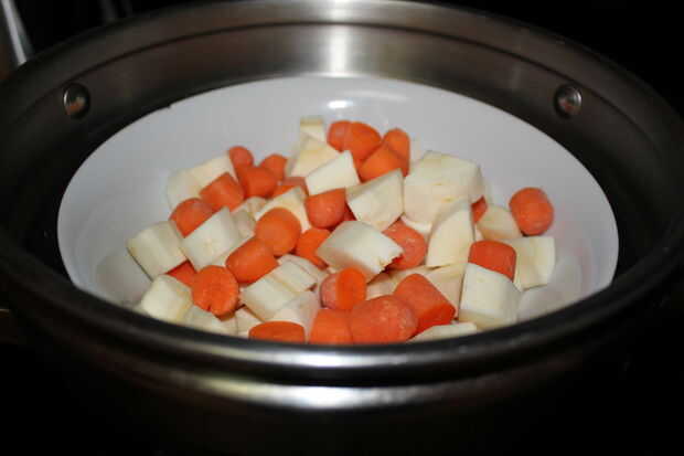Para cocinar las zanahorias y chirivías, vamos al vapor durante 8-10 minutos, o hasta que estén tiernos.