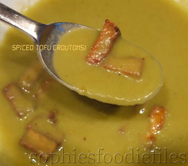 Usted puede encontrar esta receta sabrosa también aquí en mi blog: http://sophiesfoodiefiles.wordpress.com/2014/11/05/seductive-celery-garlic-soup-with-tofu-croutons/