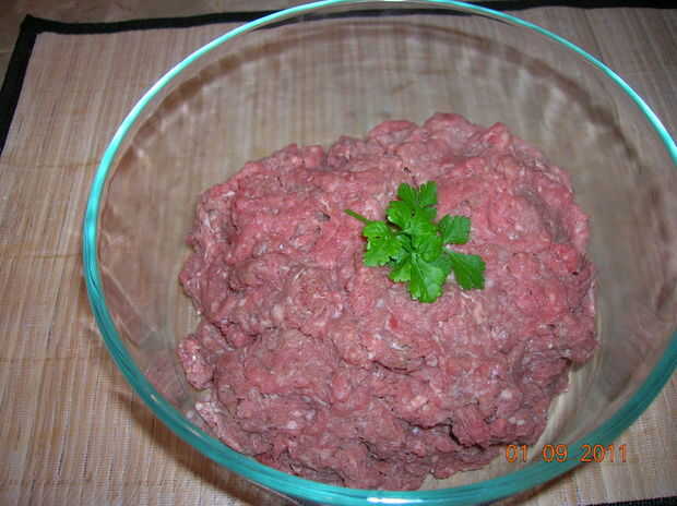 Mezclar la carne con el huevo, sal y harina y hacer las albóndigas del tamaño de una nuez.
