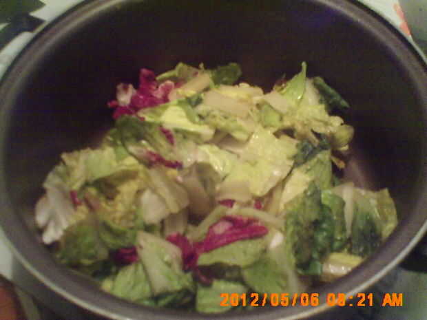 Al vapor albóndigas de carne de cerdo sobre Col de Napa
