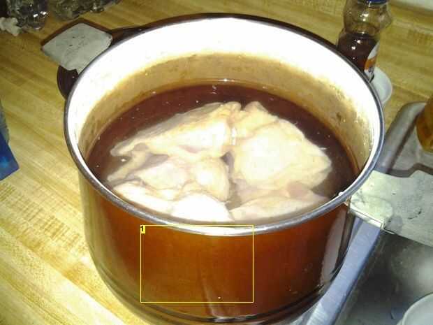 Pollo de 2 1/2 libras de palo en la olla. No corte. Piel, hueso y todo. Llenar con 12 tazas de agua. Caliente el elemento de calefacción (como una sola hornilla eléctrica que viene con la olla. Y poner el pollo en overnite (éste es cómo encanto noche, acostumbrarse a él). No tomar el pollo hasta que llegué a casa del trabajo al día siguiente. Era lento de cocción 12 + horas... dolerá un poco. Puede utilizar este mismo método para obtener el caldo de pollo muy propio.