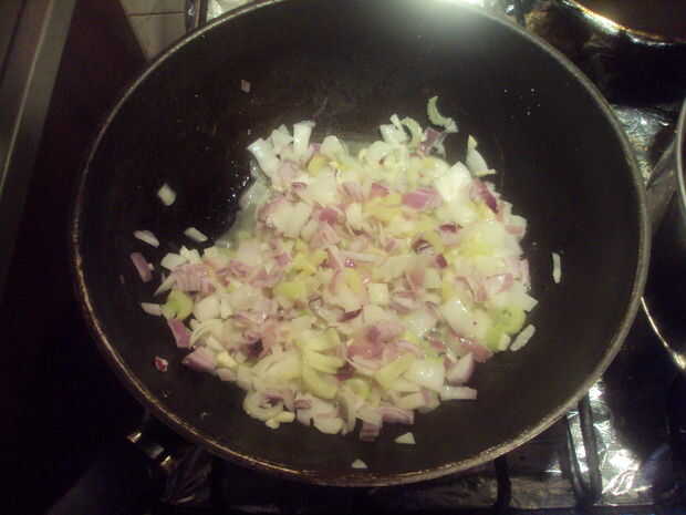 Segundo encienda la estufa y derretir la mantequilla en una sartén grande suficiente cebolla y apio, cuando se derrite la mantequilla agregan las verduras y saltear.