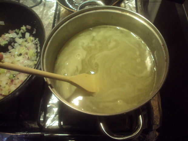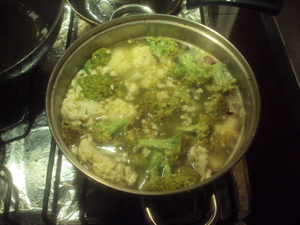 Cuando la cebolla y el apio son salteados agregar entonces a la acción con el brócoli picado y coliflor y deje que ellos cocinan para un 15 - 20 minutos.