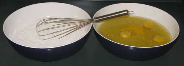 2. Mezcle el azúcar, huevos, calabaza y agua y luego agregar el aceite en un tazón.