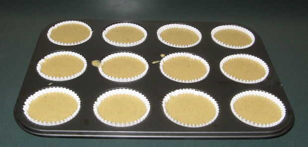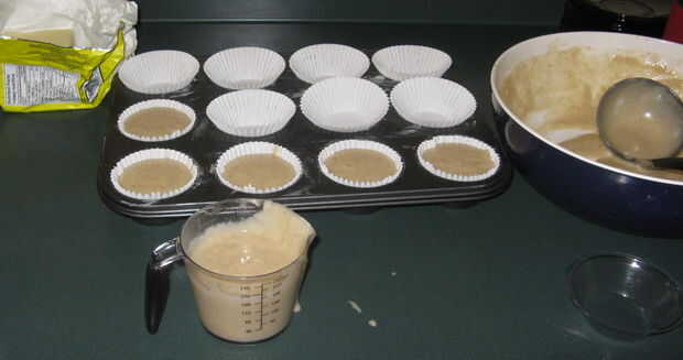 5. Llene muffin tazas 3/4 completo con masa que me gusta usar una taza de medir para ello.