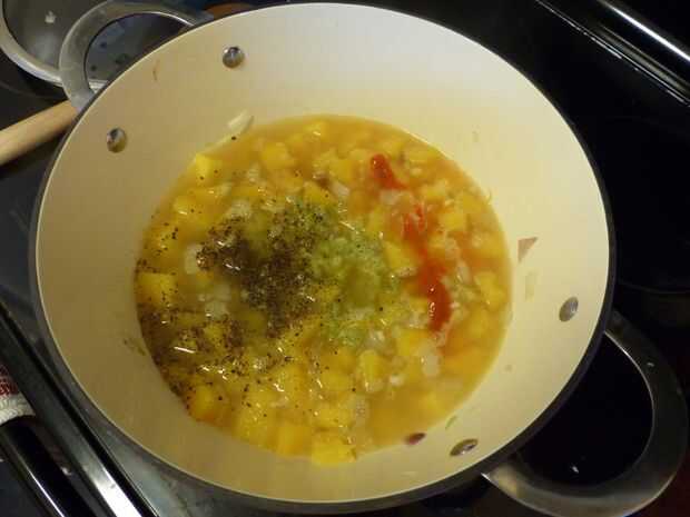 Secretos de la sopa pumpink perfecto es en agua fría. Si se va a cocinar el zapallo en agua fría liberará más sabores al agua. Se mezcla parte de esa agua junto con la calabaza y hace sopa de calabaza mucho más fuerte. Si desea elevar la prueba poco