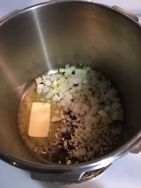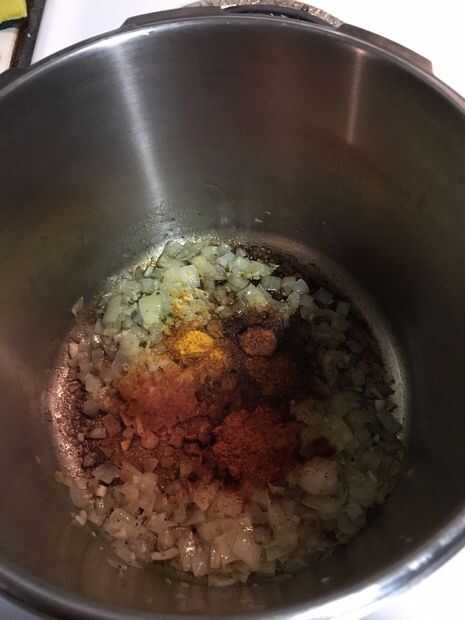 Coloque la cebolla picada y el ajo en la olla que va a utilizar para la sopa, junto con algún aceite o mantequilla. Opté por usar mantequilla ya estaba sentado en mi encimera. Cocinar la cebolla y el ajo a fuego medio alto hasta que esté suave y fragante, pero no marrón, revolviendo con frecuencia durante unos 5 minutos. Añadir la cúrcuma, polvo de ajo, pimentón, sal y Chile en polvo y mezclar. Añadir el puré de calabaza y pollo caldo a la olla y revuelva hasta combinar. Llevar la sopa a ebullición y luego gírelo a fuego lento y dejar cocer a fuego lento, revolviendo ocasionalmente. Vierta 1 taza de crema de leche y revuelva hasta incorporar. Continuar dejar que la sopa hierva a fuego lento.
