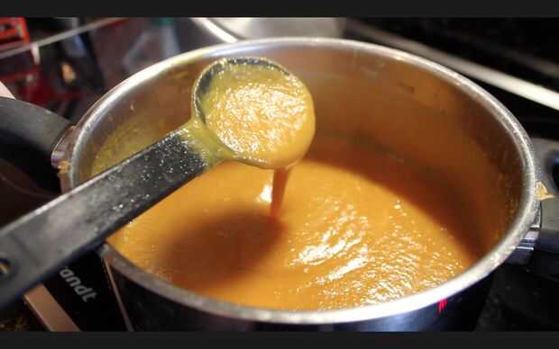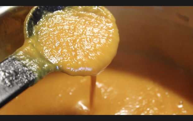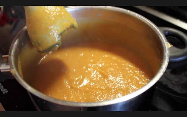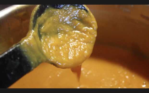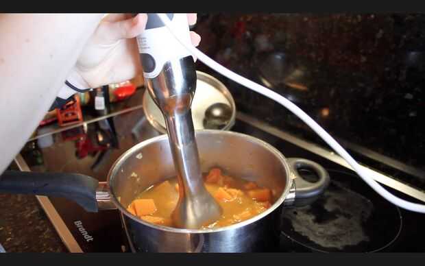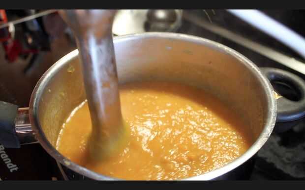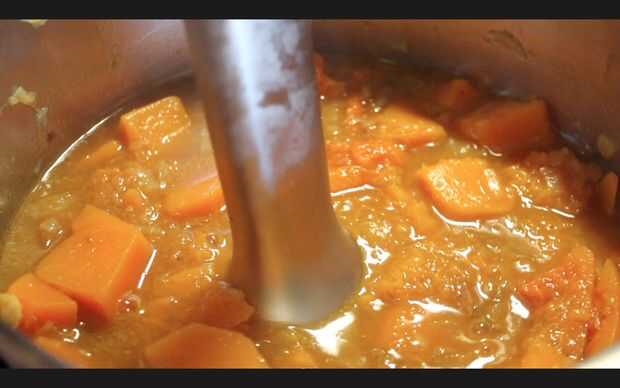 Antes de mezclar la marca de sopa que todos la calabaza esté cocida y es suave tomando el pedazo más grande de calabaza y pegarse un tenedor a través de él. Si la horquilla había aplastado fácilmente la calabaza está lista.