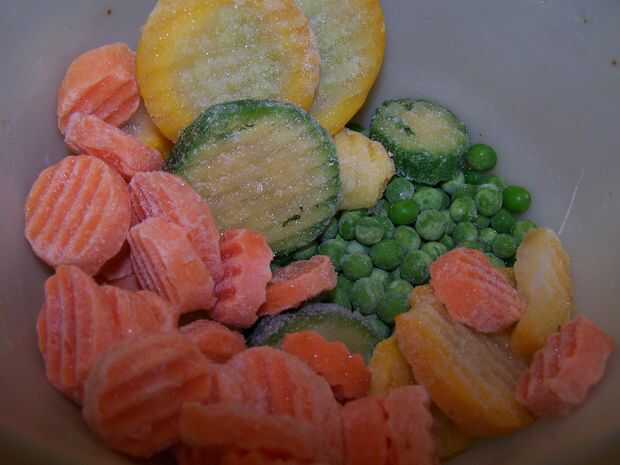 Para verduras congeladas: guisantes y las zanahorias pueden ser sustituidas. Calabaza de verano fresca no puede sostener bien.