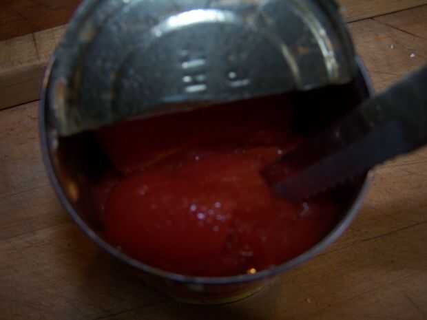 De tomates en conserva: 4-6 fresco picado Roma pasta tipo puré, cubierto de jugo de tomate.