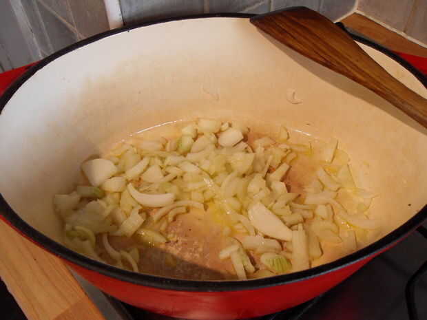 Calentar el aceite de oliva a fuego lento en una cacerola grande.