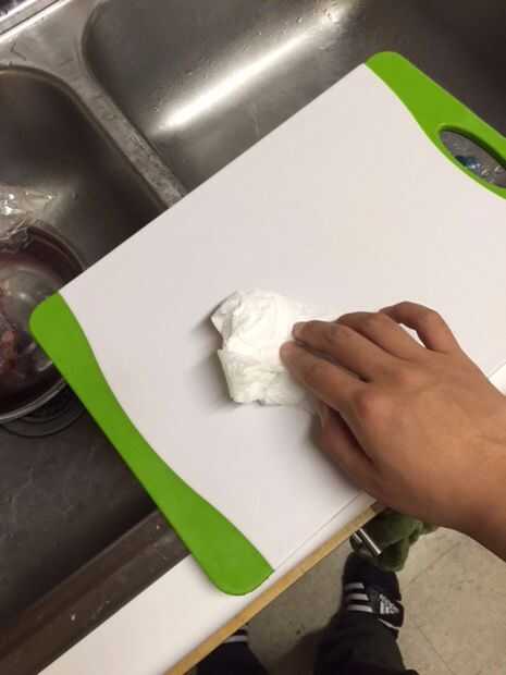 1 Enjuague el tablero de corte y asegúrese de que el tablero de corte esté totalmente seco.