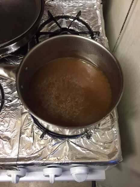 3 agregar el consomé de pollo en la caldera hasta que cubra la albóndiga.