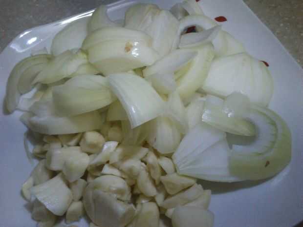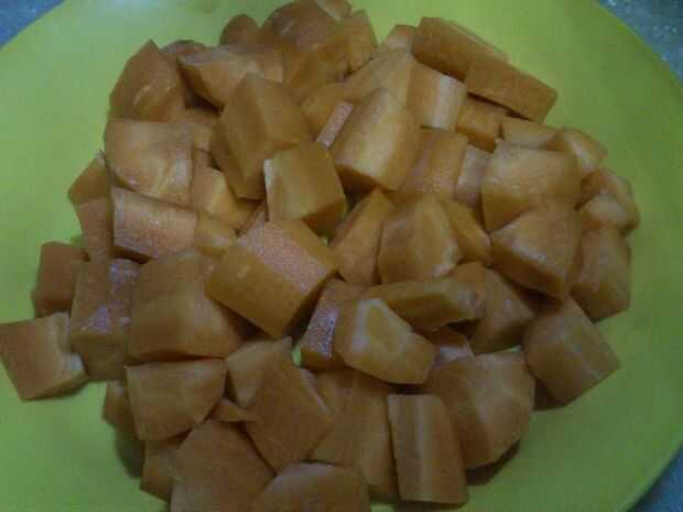 Pele las zanahorias, patatas, ajo, cebolla y cubo con un cuchillo. (si eres perezoso para picarlos, conseguirlas en cubos en supermercado)